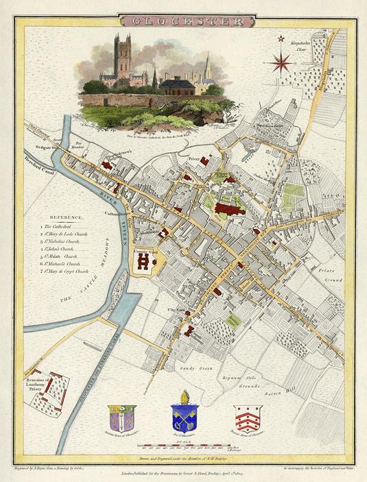 Map Of Gloucester In 1805 Engraved By J.Roper From A Drawing By G.Cole